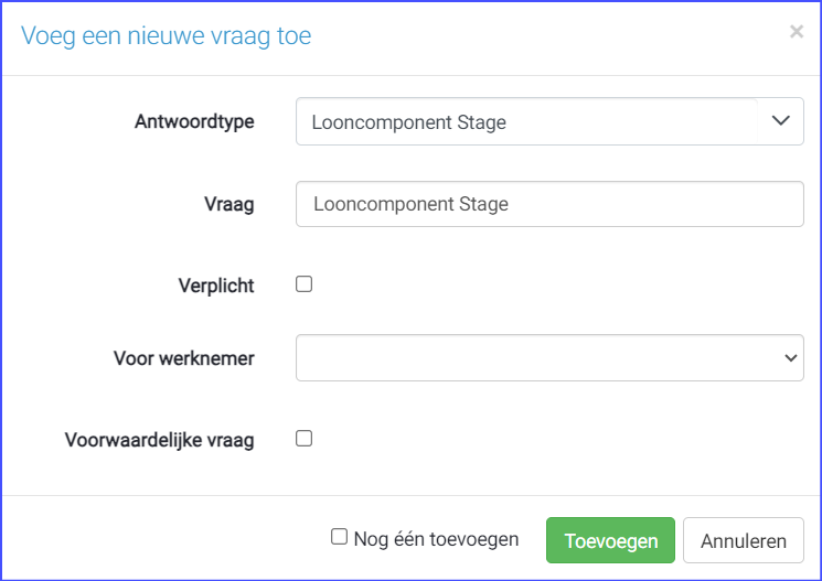 Stage looncomponent (1100) voor NMBRS Floris van Eenennaam 9 februari 2024 11:36 Bijgewerkt Het is mogelijk om een Stage Looncomponent naar NMBRS te versturen. Hiervoor is het vraagtype "Looncomponent Stage" toegevoegd. Op dit moment wordt altijd code 1100 verstuurd naar NMBRS. Het bedrag is altijd naar rato. Verwante artikelen Update 02-09-2021 - Externe / Freelance overeenkomsten Bedrijfsgegevens in een contracttemplate (moeder/dochterstructuur) Document Instellingen Tabs en tabellen gebruiken in de contract templates Opmerkingen 0 opmerkingen U moet u aanmelden om een opmerking te plaatsen.